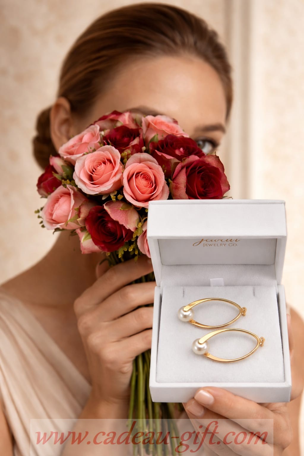 Offrez en cadeau ce “coffret bouquet de roses + 1 paire de boucles d’oreilles pendantes perles d’eau douce” pour cette personne qui compte pour vous.